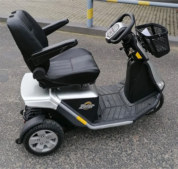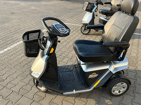 Nowoczesny 3 kołowy skuter o napędzie elektrycznym renomowanej firmy PRIDE. ZOLAR to najbardziej komfortowy pojazd na dużych kołach, który świetnie sprawdzi się w codziennym użytkowaniu. Dzięki zastosowaniu centralnego amortyzatora jazda jest wyjątkowo komfortowa. Pojazdy z centralnym amortyzatorem są najbardziej cenione przez osoby z problemami kręgosłupowymi i reumatycznymi. Zolar posiada potężny silnik, dzięki czemu max waga użytkownika może wynieść aż 189 kg!! Skuter wyposażony jest w pełne oświetlenie LED , duże pneumatyczne koła o średnicy 32-36 cm oraz w pełni amortyzowane zawieszenie. Każdy Zolar posiada wyświetlacz.